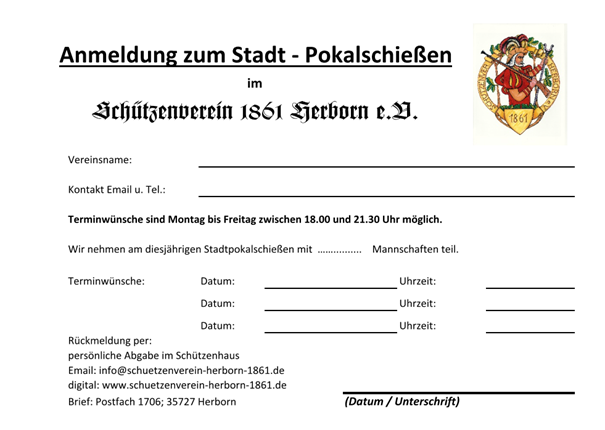 Stadt-Pokalschießen, vom 13.04. – 17.04.2026, ins Schützenhaus ein.
